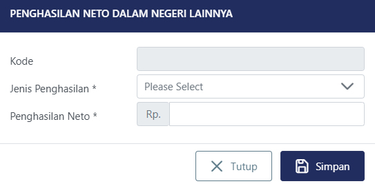 6. Isi Jenis Penghasilan yang sesuai dan jumlahnya, lalu klik Simpan.