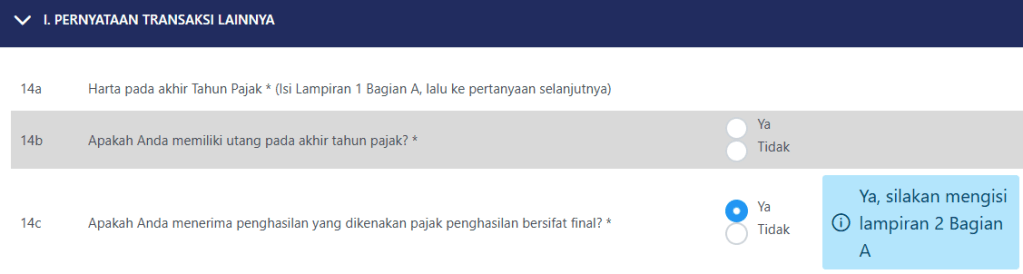 - 14.c Apakah Anda menerima penghasilan yang dikenakan pajak penghasilan bersifat final?